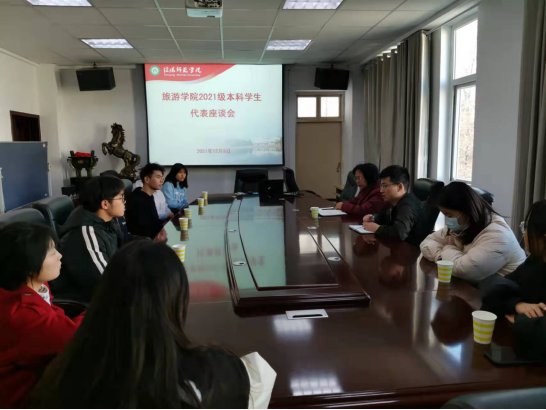 为倾听学生心声,了解学生需求,促进学院人才培养,12月3日,风月ai 在经管楼404会议室召开2021级学生代表座谈会。教学院长江晓晗、学院副书记路璐、教学秘书王晓璐等出席了座谈会。