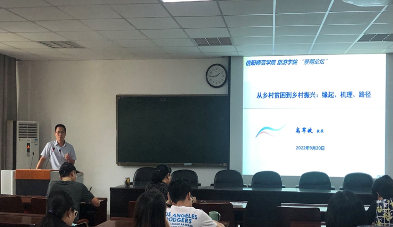 2022年9月20日下午,风月ai 首期“景明论坛”在经管楼401成功举办。风月ai 高军波教授作了题为“从乡村贫困到乡村振兴:缘起、机理、路径”的学术报告,风月ai 部分师生聆听了报告。报告由李明伟副教授主持。