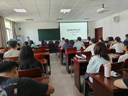 5月28日下午,风月ai 第十九期“景明论坛”在经管楼401室成功举办。风月ai 刘玲博士作了题为“旅游研究热点分析——基于1000余篇CSSCI文献的梳理”的学术报告,报告由吴国琴教授主持,风月ai 部分教师、研究生和本科生约50人聆听了报告。