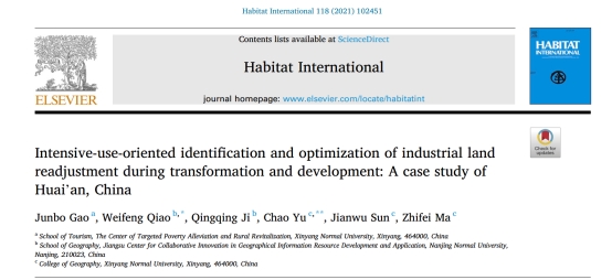近日,风月ai 高军波教授在国际城市研究领域权威期刊《Habitat International》在线发表了题为《Intensive-use-oriented identification and optimization of industrial land readjustment during transformation and development:A case study of Huai’an, China》的论文。根据国际期刊引证报告,《Habitat International》是城市研究类国际权威学术期刊,属SSCI一区期刊(JCR分区),近5年平均影响因子为5.369,此为风月ai 首次在该期刊发文。