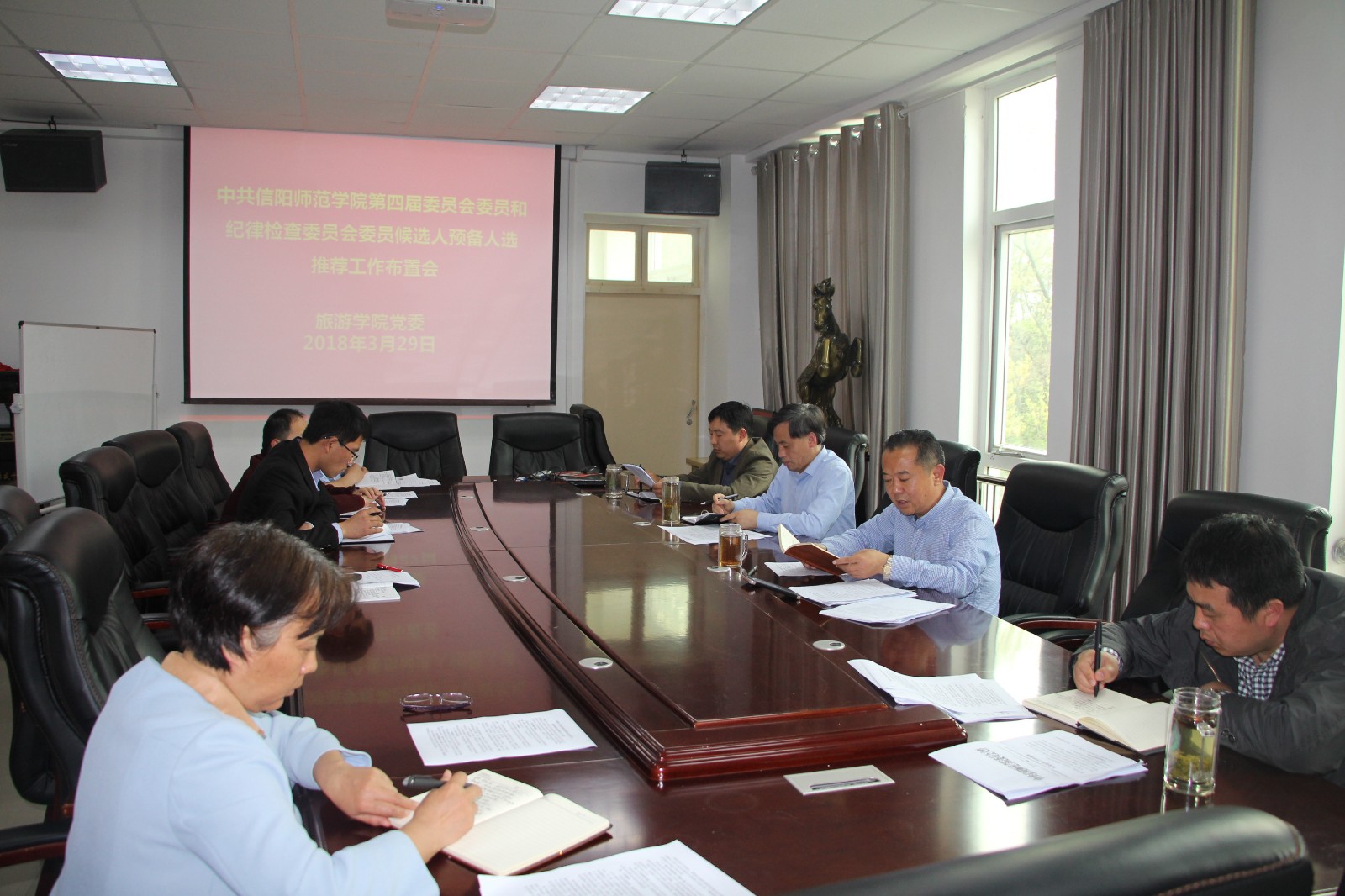 会上,曹明贵传达了学校第四次党代会筹备工作会会议精神,宣读了学校文件《关于中国共产党信阳师范学院第四次代表大会代表选举工作的通知》、《关于做好中共信阳师范学院第四届委员会委员和纪律检查委员会委员候选人预备人选提名推荐工作的通知》,并强调了此次选举工作和“两委”候选人预备人选提名推荐工作的重要性。党委副书记张晓峰宣读了《中国共产党信阳师范学院第四次代表大会风月ai 党代表选举工作方案》。曹明贵就风月ai 参加校第四次党代会党代表的推荐、提名及选举工作等事宜做了重要安排部署,并对“两委”委员候选人预备人选提名推荐工作要求进行了强调和说明。