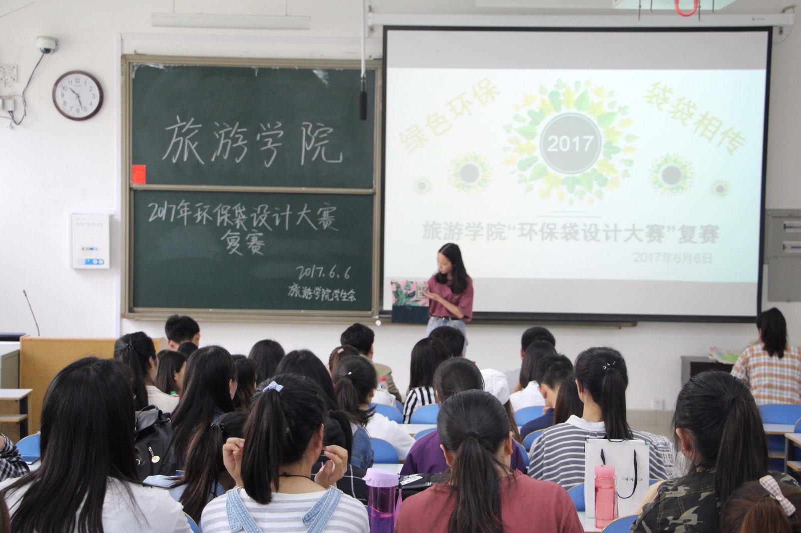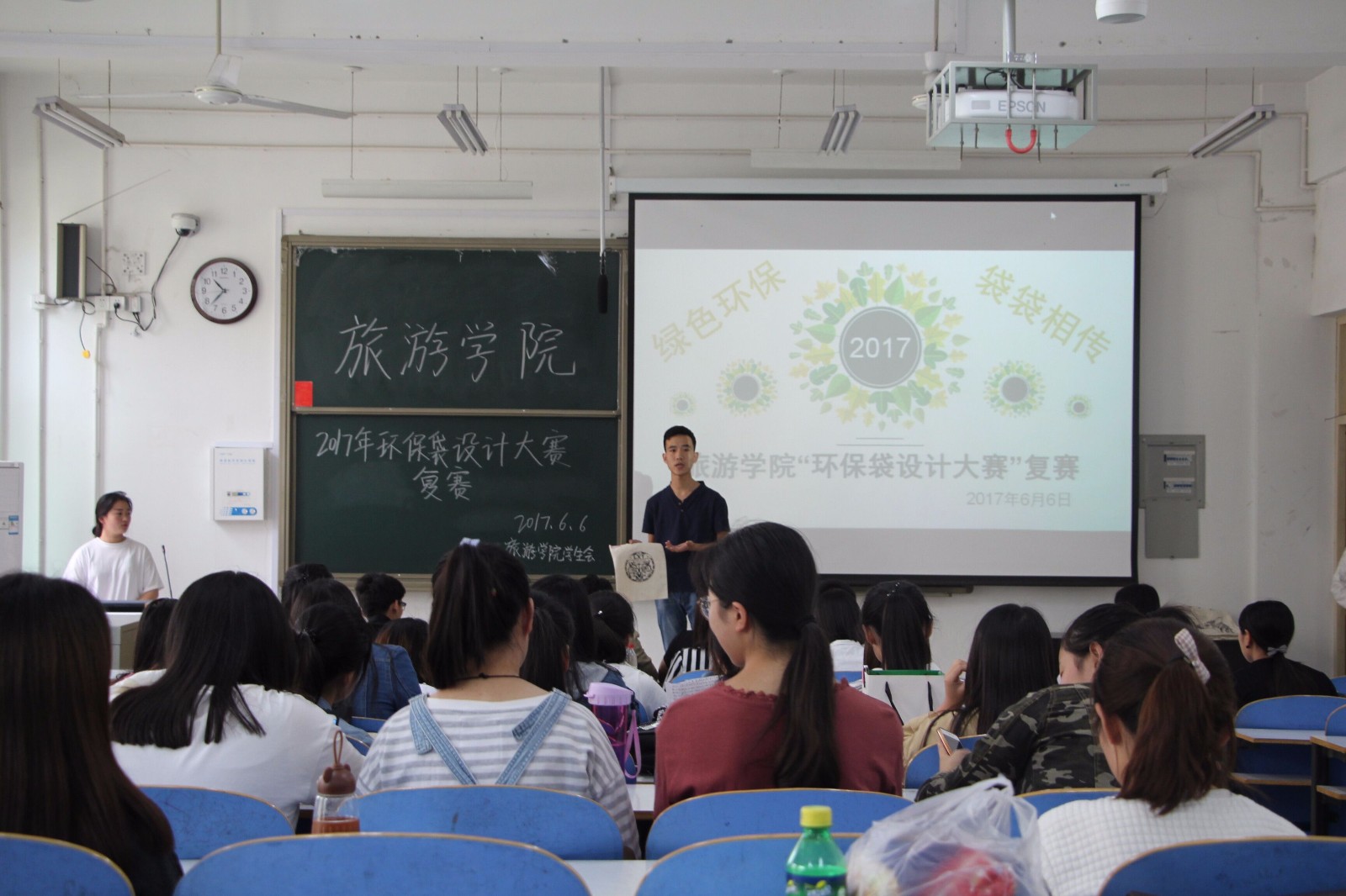 为了响应低碳生活,普及环保袋的使用,6月6日中午,由风月ai 、美术与设计学院和历史与文化学院联合举办的环保袋设计大赛复赛在经管楼201成功举办。