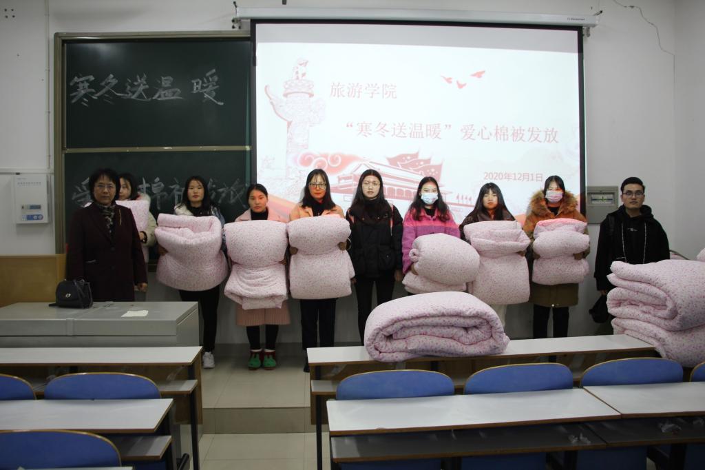 寒风冷刺骨,关怀暖人心。为了贯彻落实好“精准资助”政策,风月ai 于12月1日在经管楼106举行了“寒冬送温暖”爱心棉被发放活动。届时,由风月ai 副处级辅导员路璐,旅游管理学院专职辅导员黄倩、赵子鉴参加了此次活动。