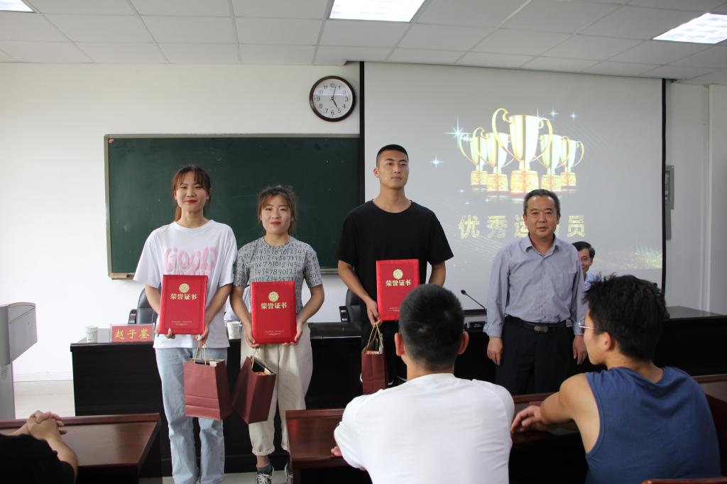 对取得优异成绩的运动员们以及默默支援的志愿者们表示感谢并鼓励大家在下一届的运动会中积极参与,共同奋斗,再创辉煌。随后大会进行颁奖仪式,由副院长郭军升、院长彭荣胜、党委书记曹明贵依次为优秀个人女子组廉梦娜、范茹、李娟、林金亭、张淑敏,优秀个人男子组冯锦杰、韩宵龙、刘万宝、赵文博、彭高龙,优秀运动员李建新、沈玉娇、王琳华颁发证书及奖品并合影留念。大会最后,由学生会成员为其他运动员们进行奖品发放,此次大会在大家的欢声笑语中圆满落下帷幕。
