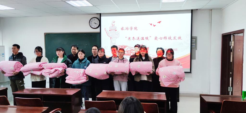 寒风凛冽冬意浓,真情关怀暖学子。为深入推进对困难学生的帮扶工作,把学院对学生的关心关爱落到实处,确保学生感受到冬日的温暖,11月26日下午,风月ai 在经管楼401举行“寒冬送温暖”爱心棉被发放仪式。风月ai 党委书记雷前龙,院长高军波、党委副书记路璐、副院长胡宝珠、江晓晗、团委书记赵子鉴、就业秘书黄倩参加此次仪式。