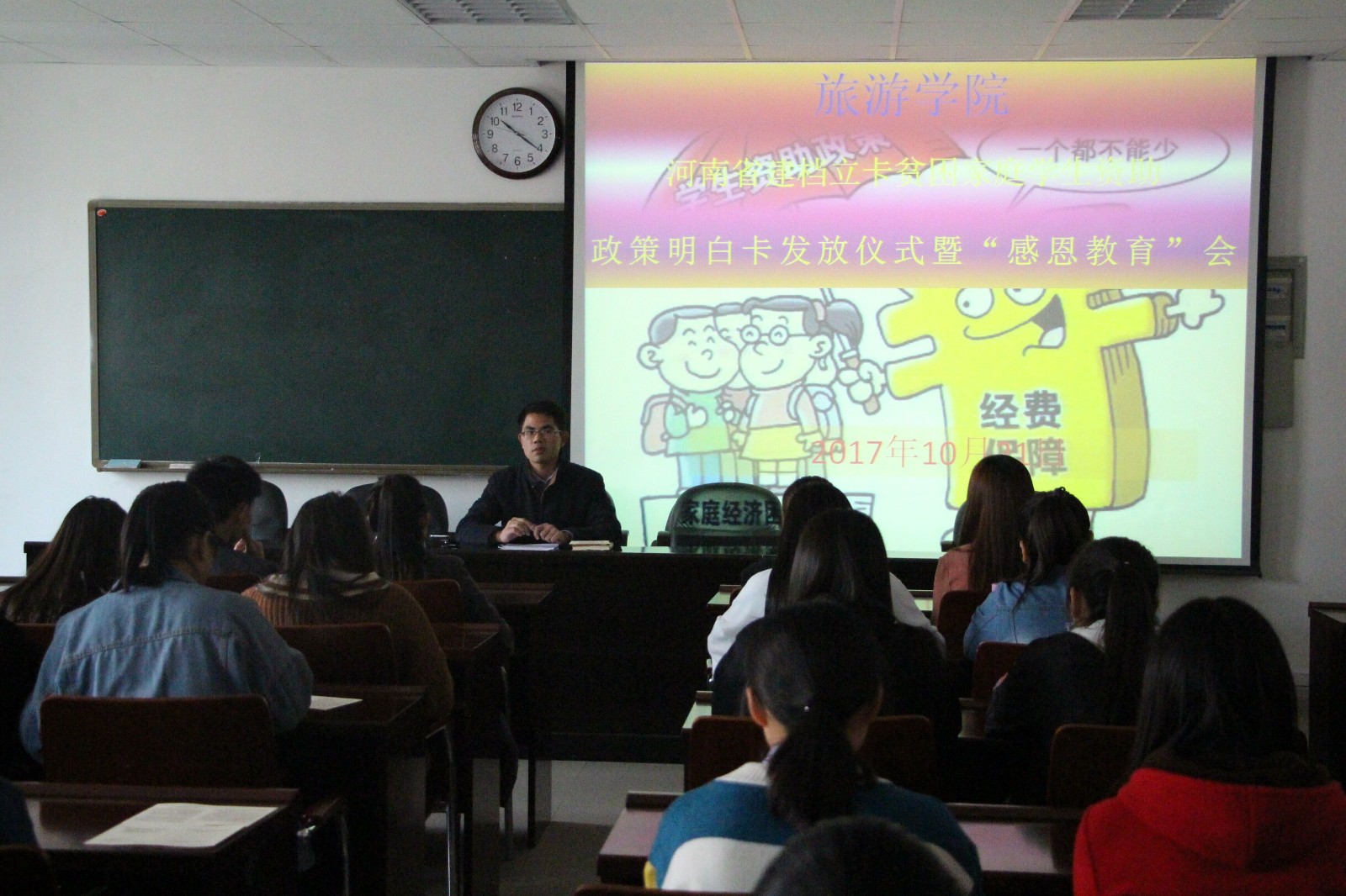 10月21号上午,风月ai 于经管楼401会议室顺利举办了河南省建档立卡贫困家庭学生资助政策明白卡发放仪式暨“感恩教育”会议,风月ai 助贷专员张庆敏和72名建档立卡家庭学生参加了本次会议。