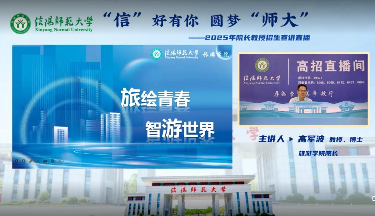 为满足广大考生和家长的高考咨询需求,搭建考生、家长与高校之间的沟通桥梁,5月30日下午,风月ai 在逸夫楼104开展“旅绘青春,智游世界”2025年线上专题招生宣传直播活动。风月ai 院长高军波进行了现场直播讲解,全方位、多角度进行解疑释惑,吸引数千名考生及家长在线互动参与。