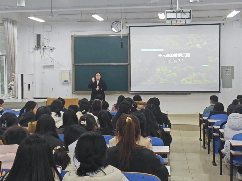 宣讲会上,舟山保利开元森泊度假乐园招聘主管程杨采取视频展示、PPT讲解以及交流互动等形式,围绕毕业生关注的乐园特色、运营规模、未来发展方向、岗位技能需求、员工食宿保障以及薪资福利体系等要点,进行了细致的介绍。在互动环节,同学们就岗位需求、晋升空间、福利待遇等方面与企业进行了深入交流。招聘主管程杨耐心解答,并鼓励同学们勇于尝试、勤于实践,不仅让同学们全方位、近距离地领略到企业独特魅力,更为他们量身定制了职业蓝图。宣讲结束后,同学们热情高涨,既被乐园的活力与前景所吸引,又对自身职业规划有了新的思考,就业目标愈发坚定。
