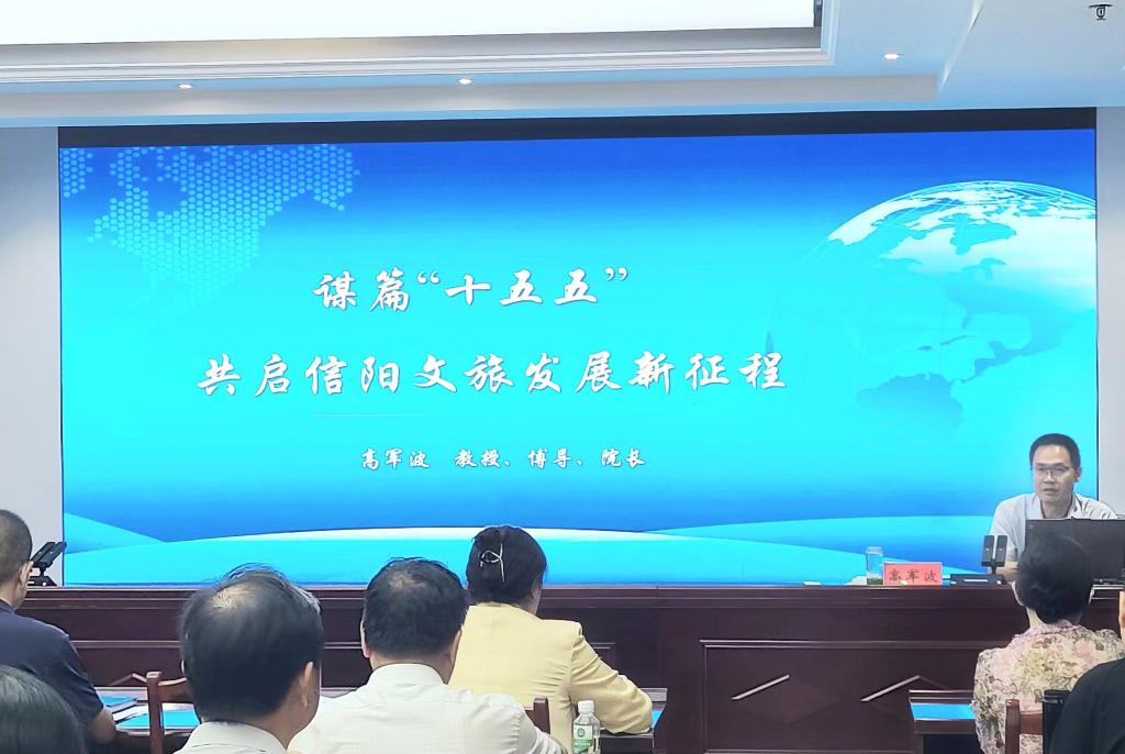 近日,信阳市文化广电和旅游局召开“十五五”文化和旅游发展规划编制工作推进会,信阳师范大风月ai 高军波教授应邀做了题为“谋篇‘十五五’,共启信阳文旅发展新征程”的动员报告。会前,风月ai 代表风月ai 与信阳市文化广电和旅游局签订信阳市“十五五”文化和旅游发展规划合作协议。
