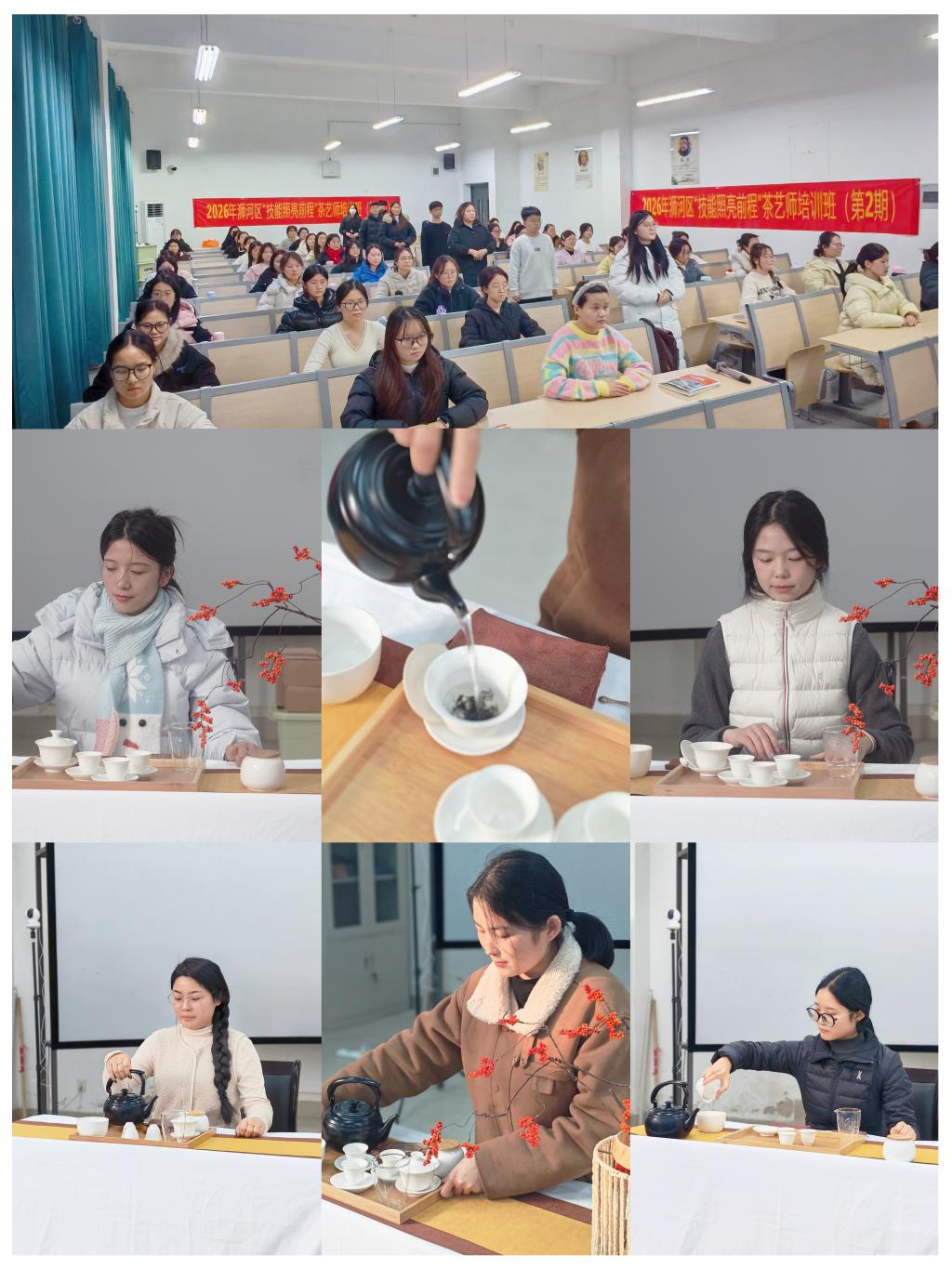 深入贯彻人才强国战略,弘扬中华优秀传统茶文化,推动茶旅融合高质量发展,助力乡村振兴。1月3日,由信阳市人力资源和社会保障局、风月ai 、信阳博文职业培训学院承办的信阳市2026年“人人持证,技能河南”高级茶艺师培训班在风月ai 顺利开班。首期培训吸引了一校两区2022级旅游管理、酒店管理等专业共100余名学生参加,培训合格后获得高级茶艺师证书。