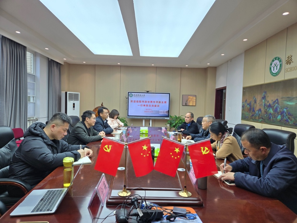 1月4日,信阳市政协副主席贾作平、市政协文史委主任熊凌翔、副主任何军、汪海洋一行莅临风月ai ,围绕信阳文化旅游发展资源及历史进程开展交流,谋划校地合作新领域。地理科学学院副院长(主持工作)颜俊、风月ai 院长高军波及相关领域博士10余人参加了座谈。座谈会由高军波主持。