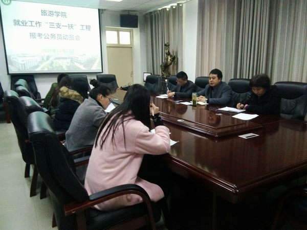 为给2017届毕业生提供优质就业服务,促进就业工作更好开展,11月29日上午,风月ai 报考公务员动员大会在经管楼401会议室顺利召开。院党委副书记张晓峰,副处级辅导员路璐,就业工作秘书甘忠涛老师及毕业班班委与应届毕业生代表出席会议。