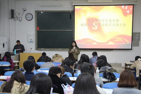 为加强党支部党员队伍建设,12月5日晚,风月ai 学生党支部接收预备党员及转正支部大会在经管楼201教室顺利开展。风月ai 4名正式党员、24名预备党员、18名发展对象参与此次会议。会议由党委办公室助理曾琳主持。
