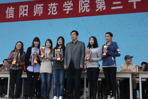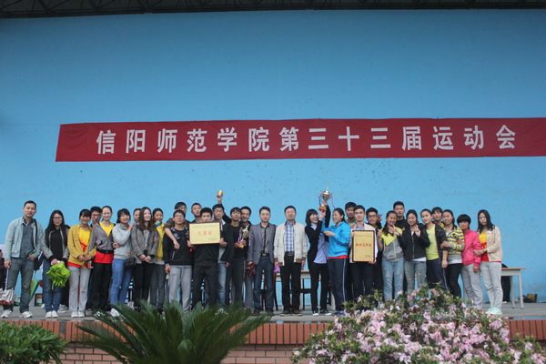 闭幕式上,王小美首先宣布体育学院2012级的高志鹏同学在男子乙组110米栏的预决赛中以16.1秒的成绩打破记录,并对他表示衷心祝贺。接着,王小美宣读本届春季运动会竞赛成绩。体育学院2012级、2011级、2013级代表队分获男子乙组团体总分前三名,体育学院2011级、2013级、2012级代表队分获女子乙组团体总分前三名。传媒学院、政法学院、工商管理学院、土木工程学院、城市与环境科学学院、教育科学学院代表队夺得男子甲组团体总分前六名,政法学院、工商管理学院、经济学院、数学与信息科学学院、音乐学院、土木工程学院代表队夺得女子甲组团体总分前六名;音乐学院、传媒学院、化学化工学院、教育教科学院、外国语学院获得第二十二届健美操大赛一等奖,经济学院、国际教育学院、计算机与信息技术学院、城市与环境科学学院、美术学院、政法学院获得二等奖,工商管理学院、数学与信息科学学院、历史文化学院、土木工程学院、文学院、物理电子工程学院、生命科学学院获得三等奖。工商管理学院、物理电子工程学院、教育教科学院、化学化工学院、文学院、国际教育学院、外国语学院、政法学院、土木工程学院、体育学院十个学院被评为“精神文明单位”。李阳等27名裁判员被评为“优秀裁判员”,程光等88名选手被评为“优秀运动员”。在欢快的乐曲声中,学校领导分别为获奖单位和个人颁奖并合影留念。最后,王小美宣布信阳师范学院第三十三届春季运动会胜利闭幕。