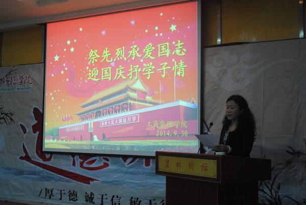 活动中,全体师生起立,为烈士默哀一分钟。师生共唱歌曲《歌唱祖国》,表达对伟大祖国的真挚热爱。师生观看了一部有关革命历史、新祖国成立视频短片,重温革命烈士为民族独立抛头颅、洒热血的英勇场景和中华人民共和国成立以来所取得的伟大成就。学生代表分别朗诵经典诗文《我的祖国》、讲述爱国故事,字字句句流露出对祖国母亲的无限崇敬及热爱之情。全体师生庄严宣誓,表达了师生们缅怀烈士功绩,弘扬革命精神,践行社会主义核心价值观,为实现中华民族伟大复兴的中国梦而贡献力量的决心。工商管理学院党总支书记李保红在总结点评中希望同学们能够牢记历史、奋发图强,继承遗志、勇担重任,努力成为新一代优秀的社会主义接班人,切实为中华民族的繁荣富强贡献一份自己的青春力量。最后,同学们纷纷写下心语心愿,张贴在心愿墙上,为祖国母亲的65岁生日送上吉祥祝福。
