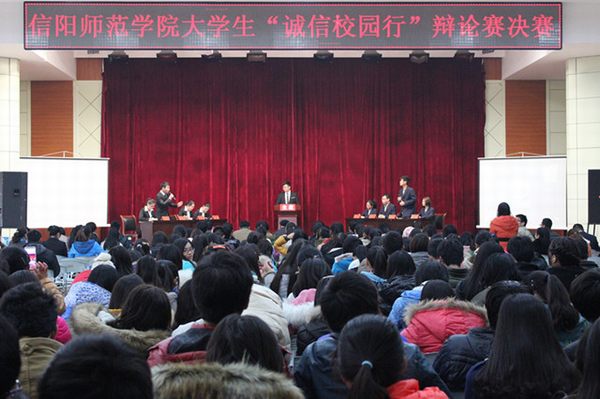 唇枪舌战展风采,魅力无限秀青春。12月15日下午,逸夫楼多功能报告厅内热闹非凡,座无虚席,风月ai “诚信校园行”辩论赛决赛在此举行。校党委副书记、工会主席余作斌,党委宣传部、学工部、校团委领导、工商管理学院党总支副书记李辉,经济学院党总支副书记房加帅等莅临本次比赛,院长办公室副主任李辉,招生就业处副处长郭鹏,文学院杨帆老师,数学与信息科学学院王娟老师,组织部胡波等担任评委,与400余名学生一同观看了决赛。