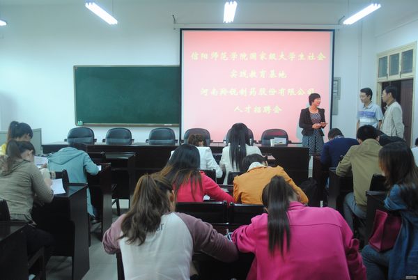 9月10日上午,工商管理学院携手信阳师范学院国家级大学生社会实践教育基地河南羚锐制药股份有限公司在经管楼会议室举办人才招聘会,党总支副书记李辉,团总支书记周明成向羚锐公司招聘负责人介绍风月ai概况 和前来应聘学生的基本情况,协调组织好各项工作,保证人才招聘会顺利举行。
