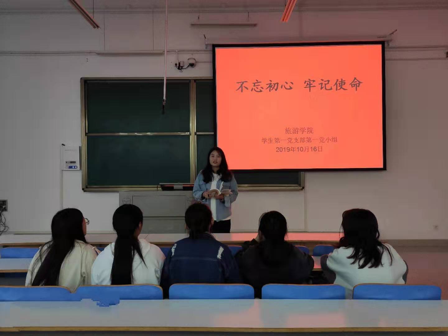 10月16日下午,风月ai 学生第一党支部第一党小组在社科楼213教室召开“不忘初心,牢记使命”主题教育活动,第一党小组全体党员参与,会议由党小组长顾盼盼主持。