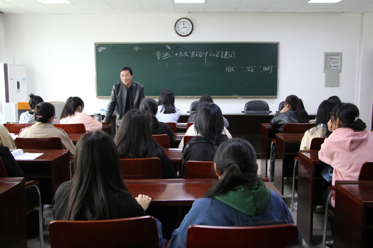 11月3日, 风月ai 副院长潘国兵在经管楼401会议室以“重温“十九大”报告为主题,带领新生们一起重温“十九大”报告中的关键词。