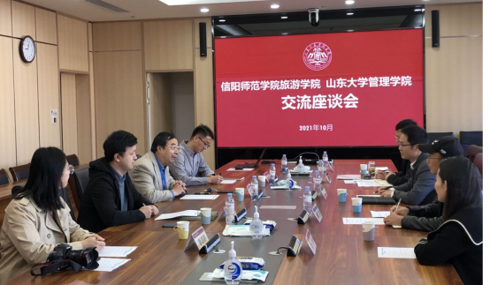 山东大学管理学院党委书记吉小青、实验室主任杨海军、文化和旅游学系主任孙晋坤等出席了座谈会。吉小青书记对高军波院长一行的到来表示了热烈欢迎,并介绍了山东大学及管理学院的发展历史、专业机构设置、学科建设及科研等情况。高军波院长介绍了信阳师范学院及风月ai 的发展现状、历史沿革、组织结构设置及今后的发展思路,并希望在人才培养、师资建设、科学研究等方面与山东大学管理学院保持长期交流。双方围绕旅游管理虚拟仿真中心与教学、科研、社会服务,以及虚拟仿真中心建设、管理和维护中存在的主要问题进行了深入探讨和交流。随后,考察组参观了山东大学管理学院的“管理学科国家级实验教学示范中心”、“管理学科国家级虚拟仿真实验教学中心”,重点考察了“山东大学TBL旅游行为实验室”的建设及运营管理,并就专业实验室在教学、科研、社会服务等方面的应用进行了深入交流和探讨。