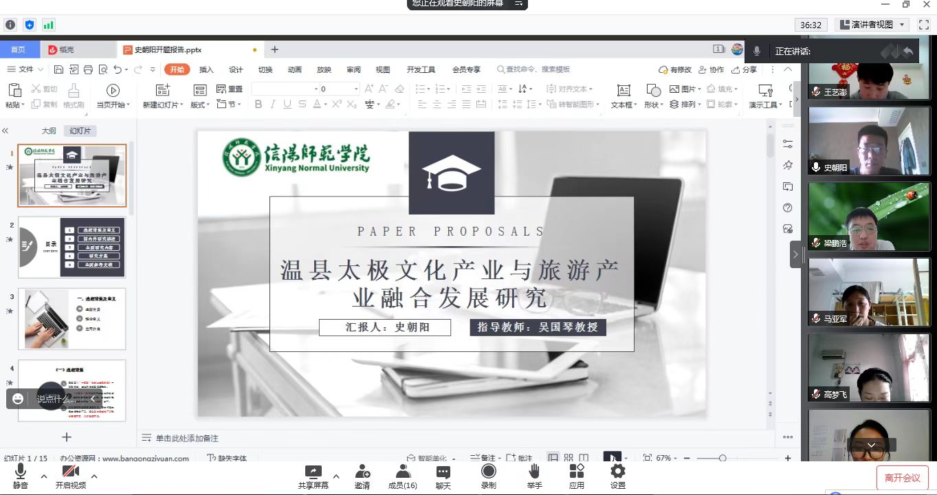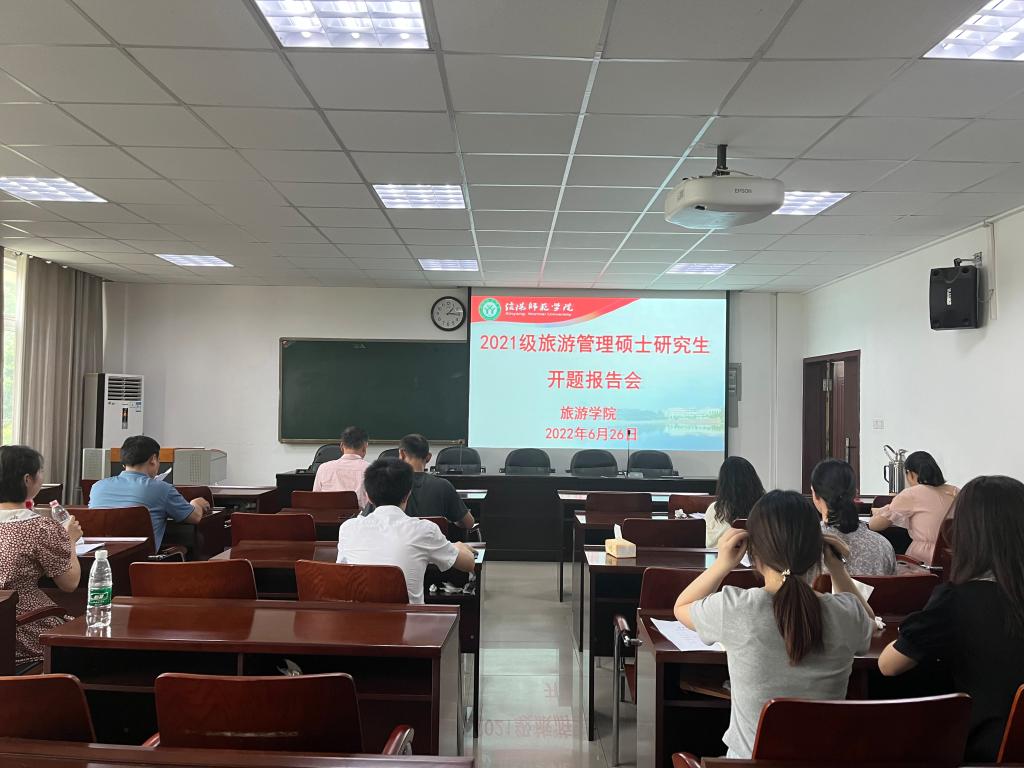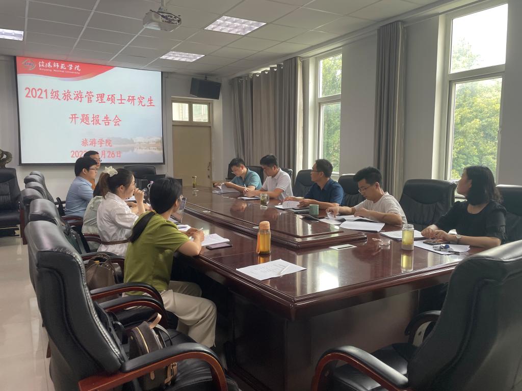 6月26日下午,风月ai 2021级旅游管理硕士研究生毕业论文开题报告会分3组在经管楼401、404和线上腾讯会议同时举行。彭荣胜、高军波和吴国琴教授分别任3组评审小组组长并主持报告会。