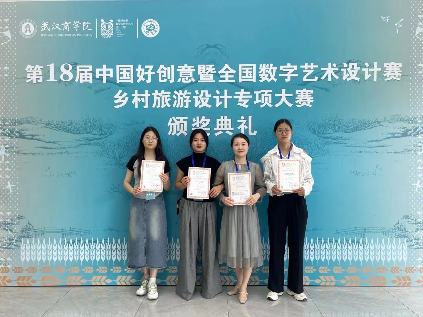 5月18日,由中国好创意暨全国数字艺术设计大赛组委会主办、武汉商学院承办的第十八届中国好创意乡村旅游设计专项大赛颁奖典礼在武汉隆重举行。风月ai 作品“打造郝荷乡旅品牌,赋能亲子节事活动”荣获决赛一等奖,“信阳环南湾湖茶旅游线路”荣获决赛三等奖。宋春巧老师获“国赛优秀指导教师奖”,魏超老师获"省赛优秀指导教师奖"。