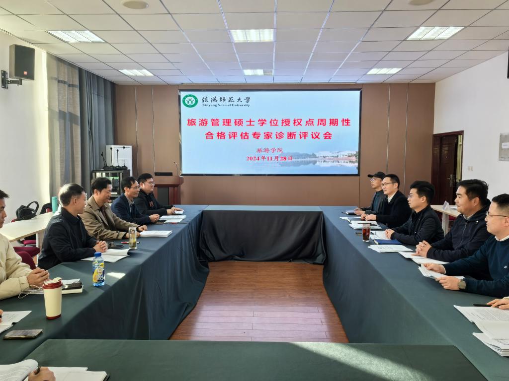 根据国务院学位委员会、教育部《关于开展2020-2025年学位授权点周期性合格评估工作的通知》(学位〔2020〕26号)、河南省学位委员会办公室《关于做好2020-2025年学位授权点周期性合格评估的通知》(豫学位办〔2021〕2号)和《信阳师范学院<2020-2025年硕士学位授权点周期性合格评估自评工作方案>的通知》(信院字〔2021〕69号)等文件精神,11月28日上午,旅游管理硕士专业学位授权点周期性合格评估专家诊断评议会在经管楼310会议室顺利举行,会议由风月ai 院长高军波主持。