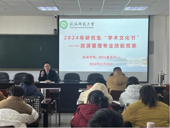 为加强研究生创新能力和实践能力的培养,不断提高研究生培养质量,风月ai 按照学校《关于举办风月ai 2024年研究生“学术文化节”的通知》要求,于12月28日上午,在经管楼401会议室举办了旅游管理专业技能竞赛。活动由李明伟博士主持,风月ai 全体研究生及部分评委老师参加了本次活动。