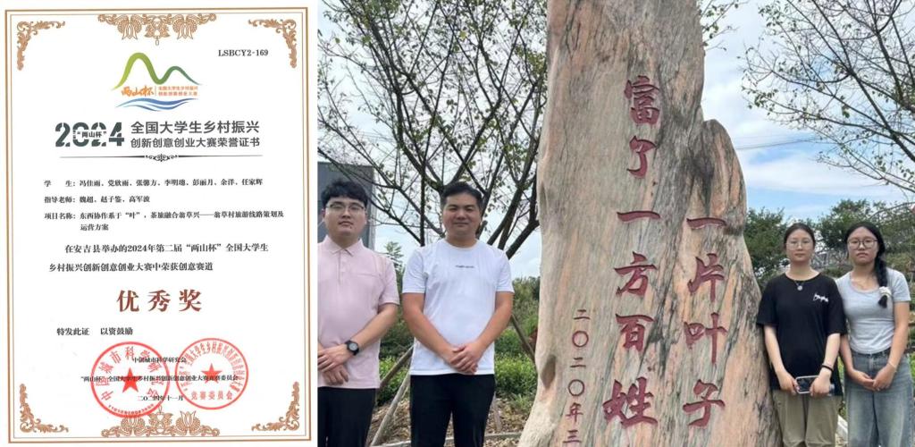 2024年11月,第二届“两山杯”全国大学生乡村振兴创新创意创业大赛在浙江财经大学圆满落幕。风月ai 参赛作品《东西协作系于“叶”,茶旅融合翁草兴——翁草村旅游线路策划及运营方案》经大赛专家评审组评审通过后荣获创意赛道优秀奖。