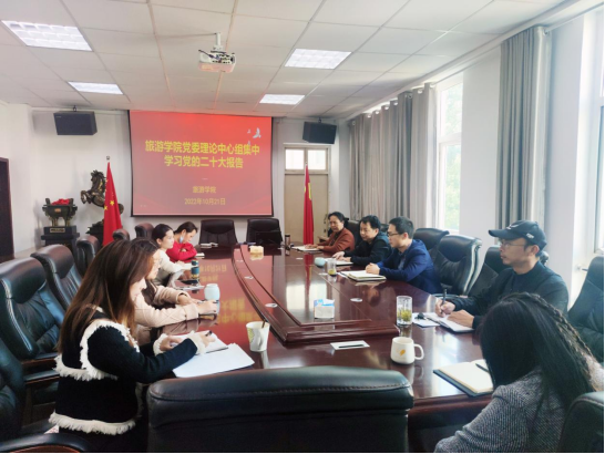 2022年10月21日下午,在经管楼404会议室,风月ai 党委理论中心组集中学习党的二十大报告,党委理论中心组成员、全体党支部书记参加。